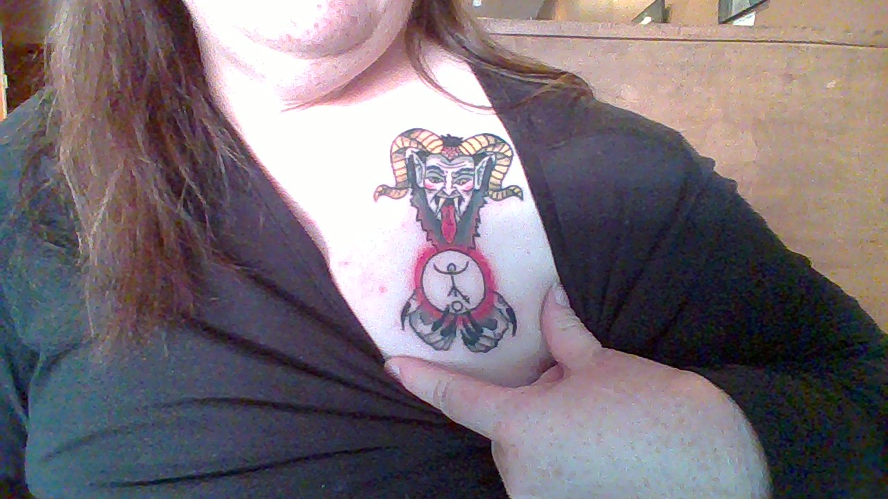 Yes, I got it. The artist was young and not very experienced, but her art was the best, and I am quite happy with the way it turned out. Here is a picture. I should have been chanting satan's enn during, but it hurt and my jaw was clenched. LOLOL!